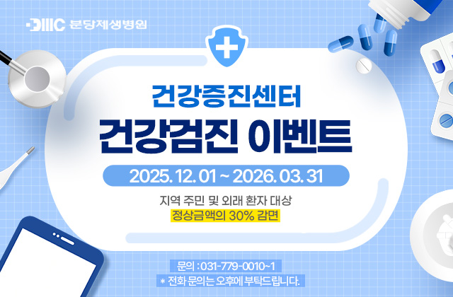 [EVENT] 분당제생병원 소원을 말해봐 이벤트 [EVENT]분당제생병원 소원을 말해봐 이벤트분당제생병원이따뜻한 연말을 선물하기 위해 특별한 이벤트를 준비했습니다.병원 본관1층 / 별관1층 트리에 마련된 소원 엽서에여러분의 사연과 소망을 적어주세요.엽서를 작성해주신 분들 중 감동적인 사연을 선정하여 다양한 상품을 드립니다!MOVING EVENT '특별상’에 선정되신 분께는 원하시는 소원을 실제로 이루어드리는 MOVING 서비스가 제공되니 많은 참여 부탁드립니다.행복 가득한 연말 보내세요! 🎄✨*경품 수령을 위해 이름,전화번호 제공 및 개인정보 수집·이용 동의가 필요합니다. 정확한 경품 전달을 위해 해당 내용을 꼭 작성해주세요.문의 : 031-779-0433 자세히 보기 -
