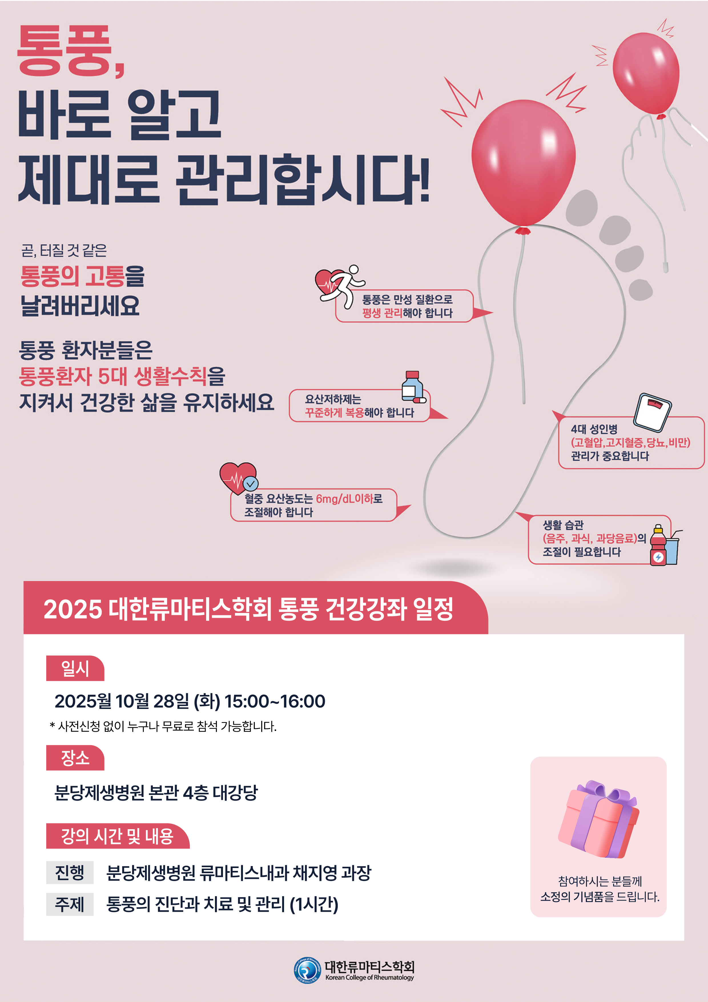 [분당제생병원] 2025 대한류마티스학회 통풍 건강강좌