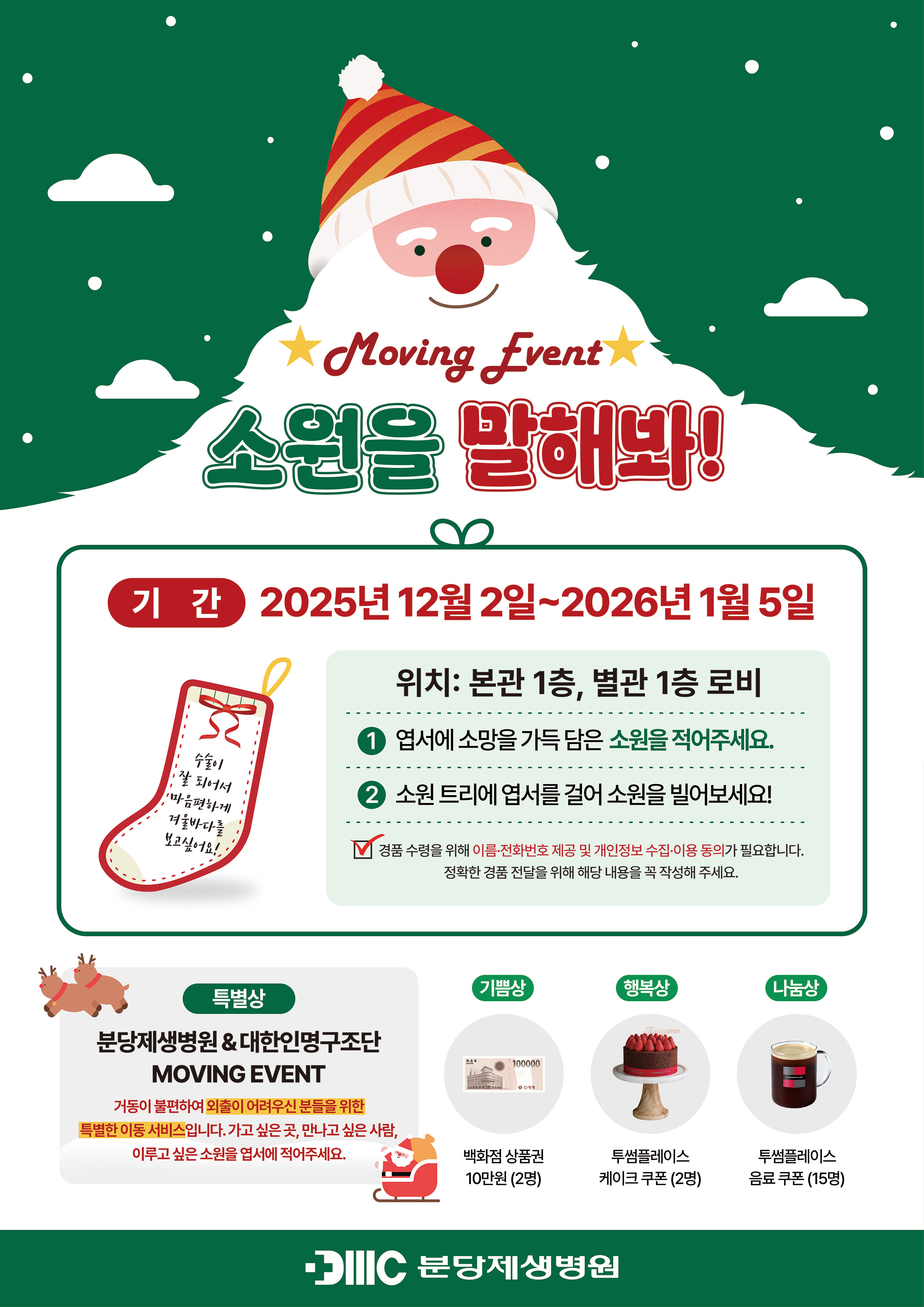 분당제생병원이 따뜻한 연말을 선물하기 위해 특별한 이벤트를 준비했습니다.