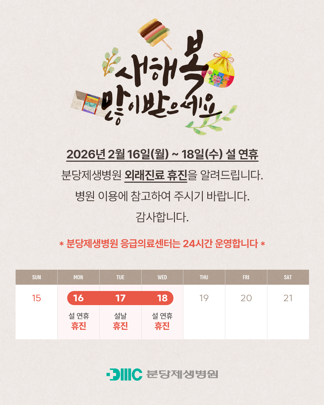 2026년 2월 16일(월) ~ 18(수) 설 연휴 진료 안내