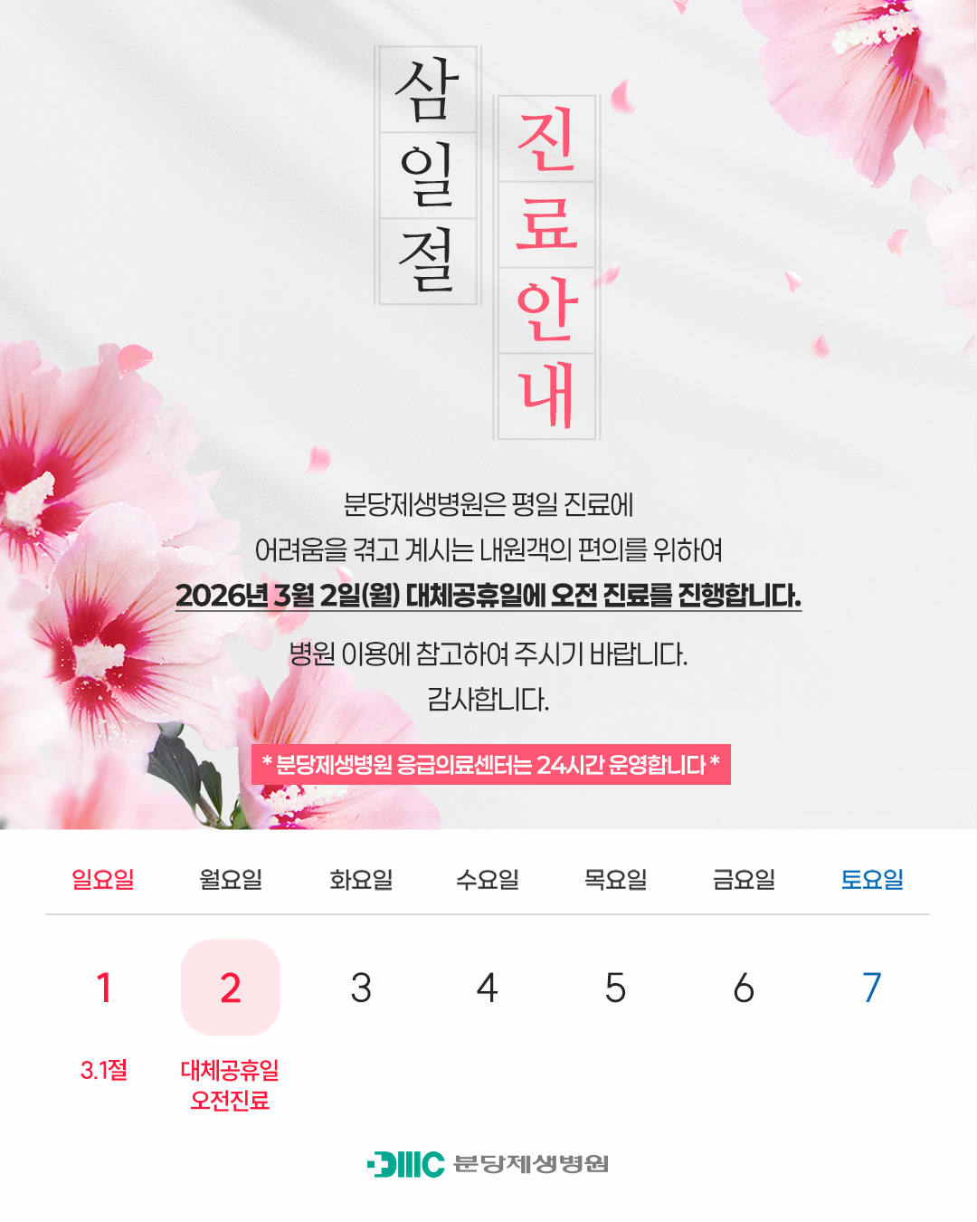 🌺분당제생병원 3월 2일 삼일절 대체공휴일 진료 안내🌺